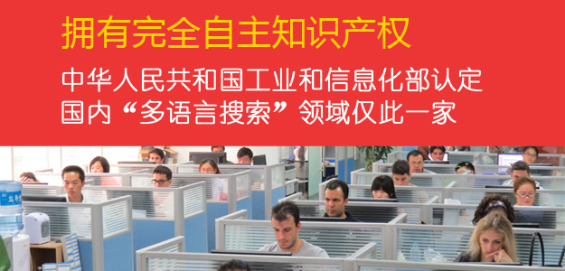Sosearching(首擎),上海首擎信息科技有限公司成立于2010年,公司致力于國外搜索引擎的研究,使國內企業(yè)產(chǎn)品能在國外大量搜索引擎中搶占搜索資源,快速占領國際市場,實現(xiàn)產(chǎn)品展示的本土化,公司主要服務全國的出口型企業(yè)。 Sosearching(首擎)多語言搜索系統(tǒng)獲得中華人民共和國國家出版局認定,擁有完全自主知識產(chǎn)權。Sosearching(首擎)多語言搜索系統(tǒng)獲得中華人民共和國工業(yè)和信息化部認定,擁有上海市經(jīng)濟和信息化委員會頒發(fā)的軟件企業(yè)認定證書,國內“多語言搜索”領域唯此一家。